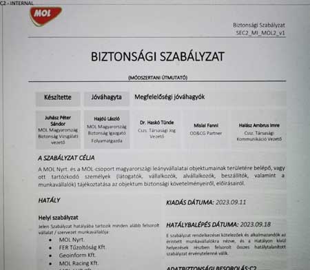 A MOL Biztonsági Szabályzatában nagyon szép dolgok vannak leírva. Ezt olvasgatva már-már úgy érzi az ember, hogy biztonságban van az élete.