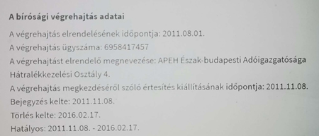 Tekintettel arra, hogy ez a cég is 2010-ben tett közzé utoljára éves beszámolót, illetve készített adóbevallásokat, azt követően nem, továbbá az új tulajdonosok nem vették át a kft. címére érkező hivatalos leveleket, az illetékes cégbíróság - nem meglepő módon - a vállalkozás kényszertörlését rendelte el.
