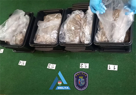 A lakásban bruttó 4859 gramm kábítószergyanús növényi ágvégződést, valamint bruttó 4580 gramm kábítószergyanús növényi zúzalékot, továbbá 322 cannabis magot találtak a nyomozók. A növényi törmelékeken elvégzett kábítószergyorsteszt pozitív értéket mutatott.