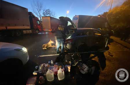 A páros elfogását hosszú felderítőmunka előzte meg. A nyomozók beszereztek minden olyan bizonyítékot, amely alátámasztotta a két férfi bűnösségét. Az akció október 28-án volt. A két budapesti férfit akkor fogták el, amikor Hollandiából hazafele tartottak. Az M1-es autópálya Hansági pihenőjében csaptak le rájuk a nyomozók. Kocsijukban megtalálták azt a 4,5 literes mosószeres flakont, amiben amfetamin volt, ahogy azt a kábítószergyorsteszt is kimutatta. Az illegális folyadék szakértői vizsgálata még zajlik. Az előzetes számítások szerint azonban az sem kizárt, hogy ebből összesen több mint 10 kilogramm kábítószert tudtak volna előállítani. A rendőrök a két férfitől a kábítószergyanús anyagon túl 620 ezer forintot, 1600 eurót, valamint mobiltelefonokat és egy gépkocsit is lefoglaltak. Mindkettőjüknek kábítószer-terjesztés miatt kell felelniük.