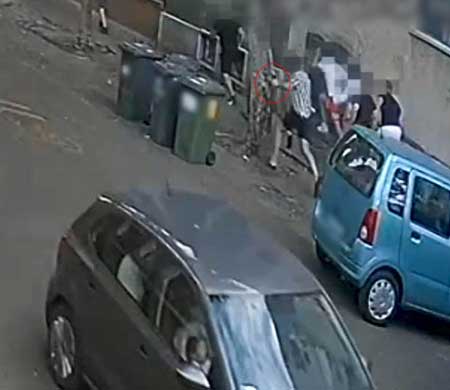 Az egyik vádlott ezután a gumilövedékes pisztollyal háromszor a sértett fejére lőtt, de a férfinak sikerült a karjait arca elé kapnia, így csak ott találták el. Egy másik vádlott karddal sújtott felé, a fegyver a vállát érte. Az áldozat ekkor futva menekült, mire a vádlottak felfegyverkezve üldözni kezdték az utcán, az egyikük közben még legalább kétszer rálőtt. Az utcán történtek jó részét térfigyelő kamerák rögzítették.