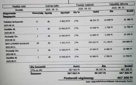 2025. július16-án a közös képviselő elküldött néhány számlát jóváhagyásra, ebből az egyik számla elég magas összegű volt (lépcsőházi ablakok cseréje 428 069 forint). A javítás ekkor egy hónappal korábban már megvalósult.