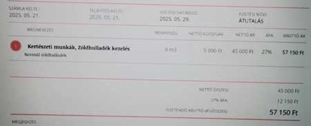 Zöldhulladék elszállítás indokolatlan kifizetése