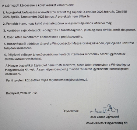 „Jó napot a szerkesztőségnek! A Windcollector Kft. nem csak a Kőbányai Vagyonkezelőtől hoz el komoly pénzeket, hanem a Józsefvárosi Önkormányzattól is sok megbízást kap. Egyébként pedig az Országos Katasztrófavédelmi Főigazgatóságtól is több zsíros munkát kaptak korábban. Elég csak átnézni a Google keresőt, egy halom szerződés megtalálható ott. Ami furcsa számomra, hogy nincs céges honlapja a Windcollectornak. A mai világban hogyan lehet így működni az üzleti életben? Hogyan szereznek így munkákat?” (P. L.)