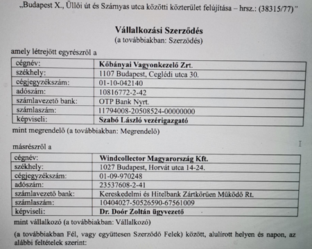 Azt hallani, hogy a Windcollector Magyarország Kft. gyakran kap megbízásokat a Kőbányai Vagyonkezelő Zrt.-től, meglehetősen gyümölcsöző kapcsolatban állnak az önkormányzati céggel, sok pénzt hoznak el onnan.