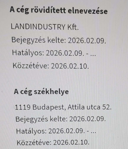 Mindössze fél hónap nyugalom után ismét aktivizálták Lakatos Zoltánt, mint kipróbált és bevált „tulajdonos-ügyvezetőt”. 2026. február 3-án megalakult a nyolcadik, bűncselekmények elkövetésére létrehozott cég, a LANDINDUSTRY Kft.