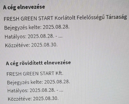 A következő kamucég alapítására mindössze két hetet kellett várni. 2025. augusztus 27-én ugyanis megszületett a FRESH GREEN START Kft. Ennél az alakulatnál Pataki Barnabást találták alkalmasnak arra, hogy a fejét a hurokba dugja. A 28 éves „tulajdonos-ügyvezető” Nyírkátán tengeti mindennapjait.